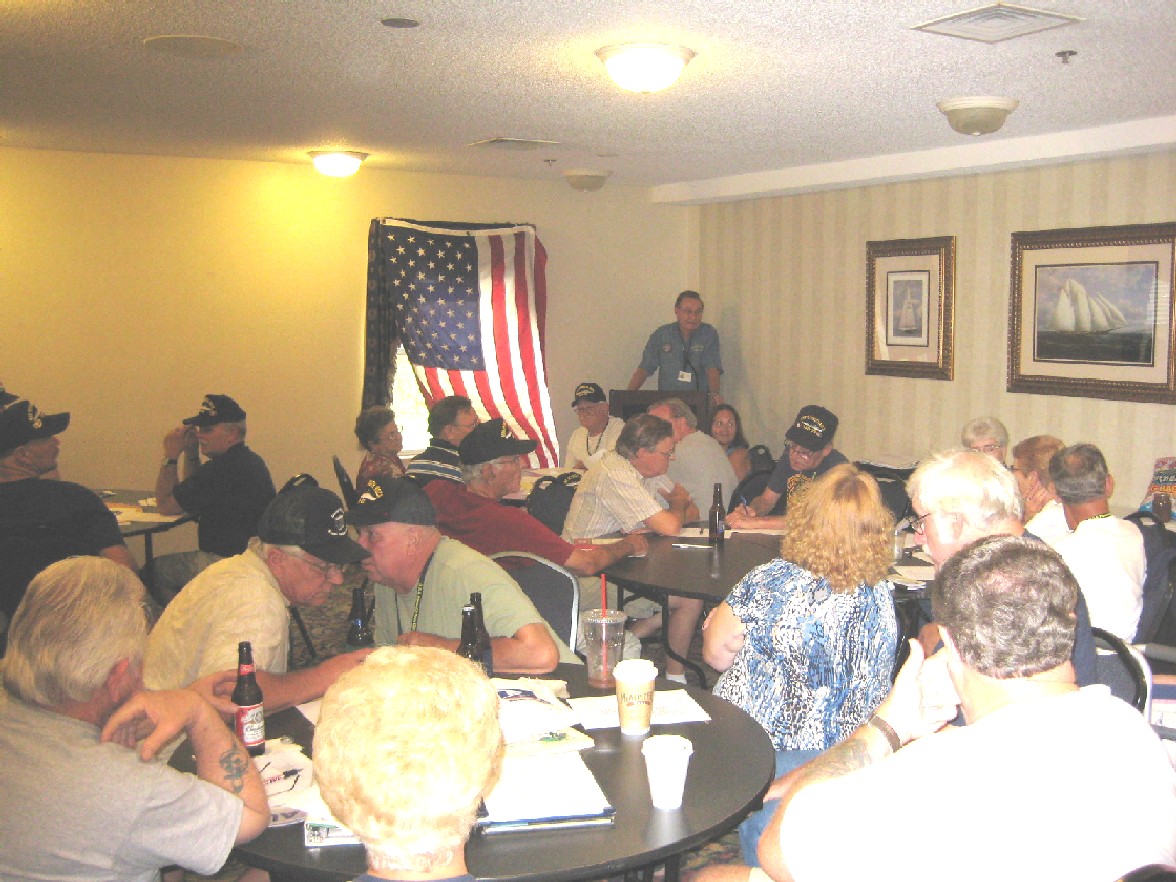 Day 1: After settling into our rooms at the Quality Inn, the reunion began with registration which turned out to be very busy for those of us working the tables in getting information updated for the ships Muster List, collecting dues, collecting money for the programs signed up for and having applications completed for new members. That evening we attended a Welcoming Buffet at the Point Grill to mingle with old shipmates and catch up on what had transpired since the last reunion. After the buffet it was back to the Hospitality Room for some cold beers and story telling.